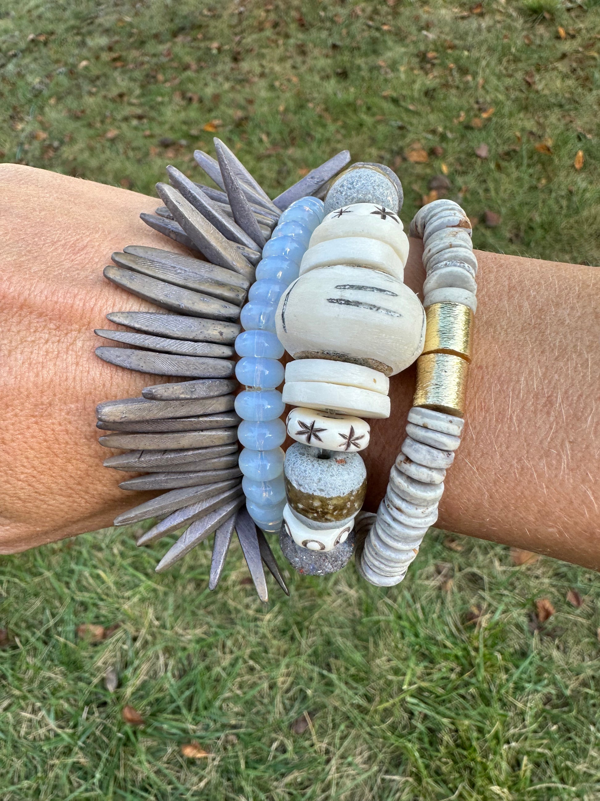 Grey Coconut Spike Bracelet comes in a variety of colors, making it an eye-catching addition to any bracelet stack.