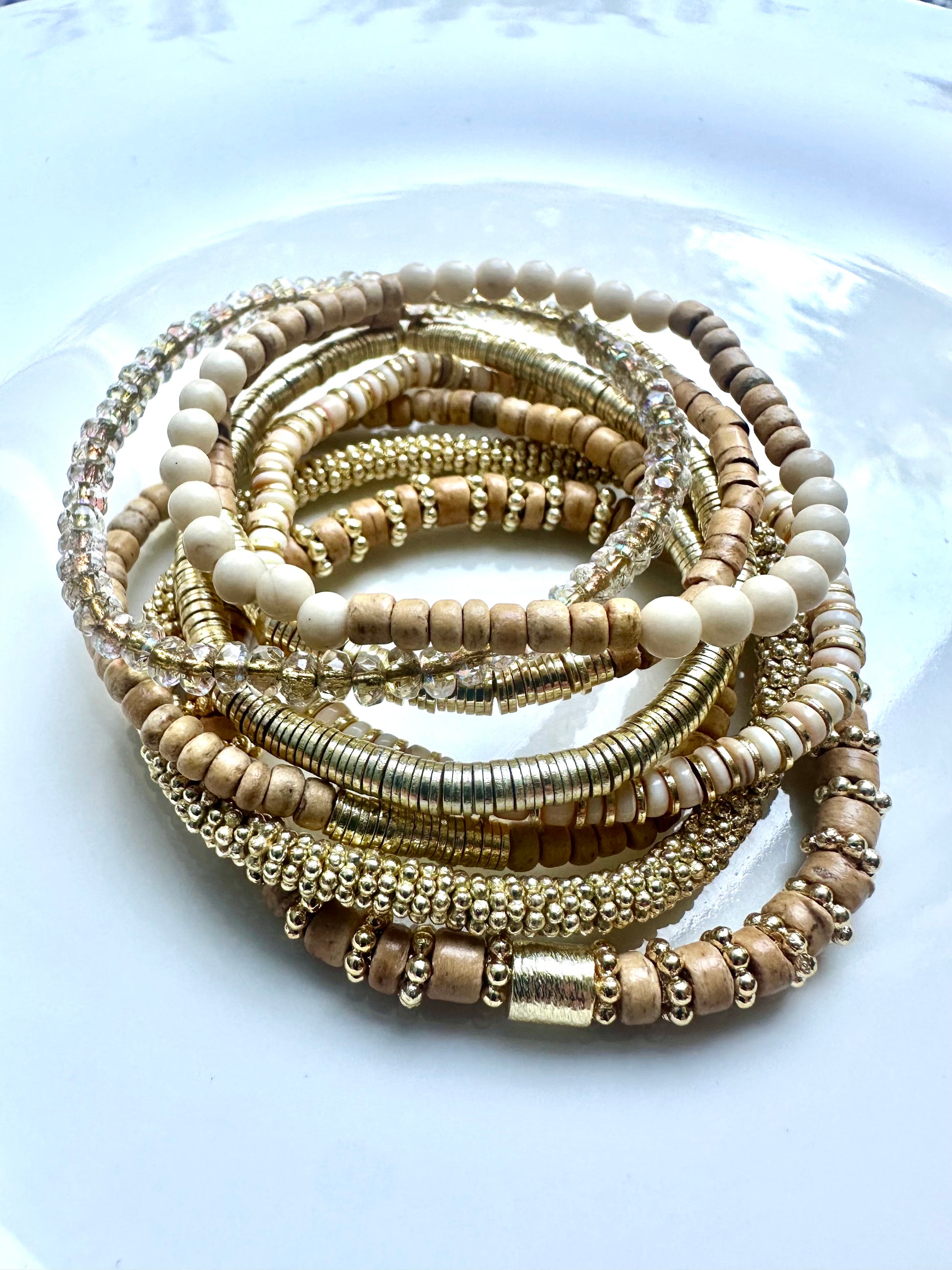 Elevate your everyday look with this stunning handmade bracelet stack — designed to bring warmth, texture, and a touch of boho-luxe charm to any outfit. Each stack features a beautiful blend of natural and high-quality materials: