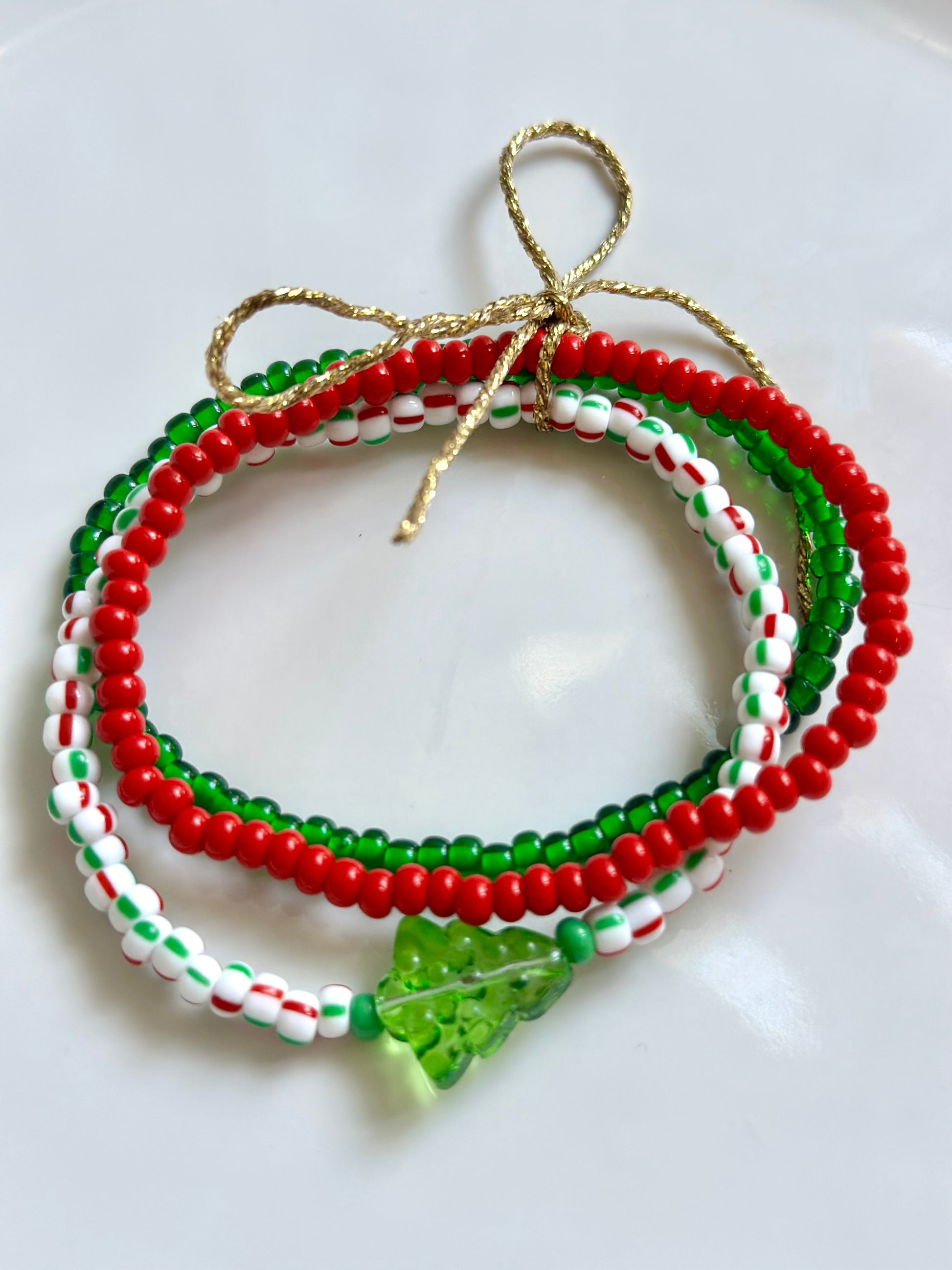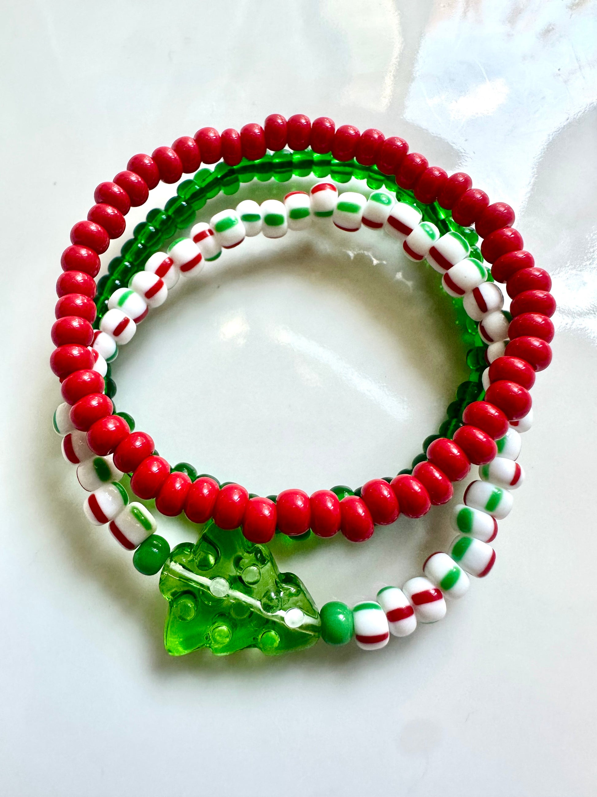 Introduce some sparkle and holiday spirit to your look with our Oh Christmas Tree Stack. This stunning handmade set of bracelets features festive beads, making it a must-have seasonal accessory. This is for stack of 3
