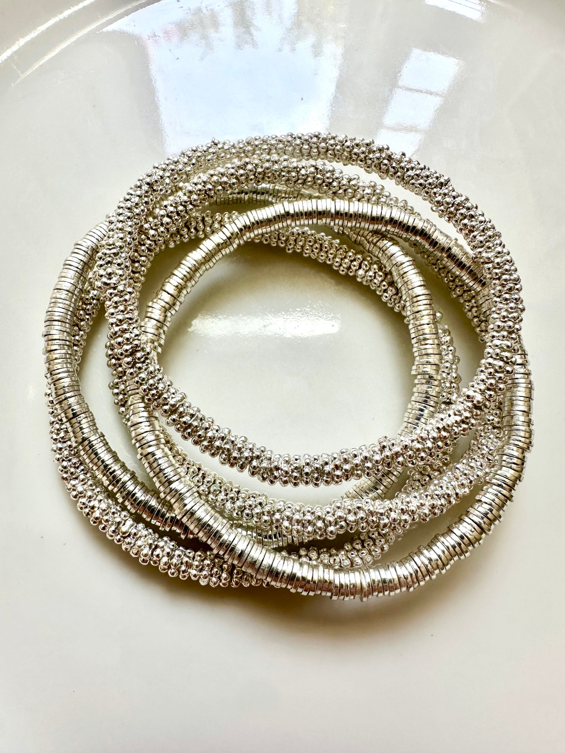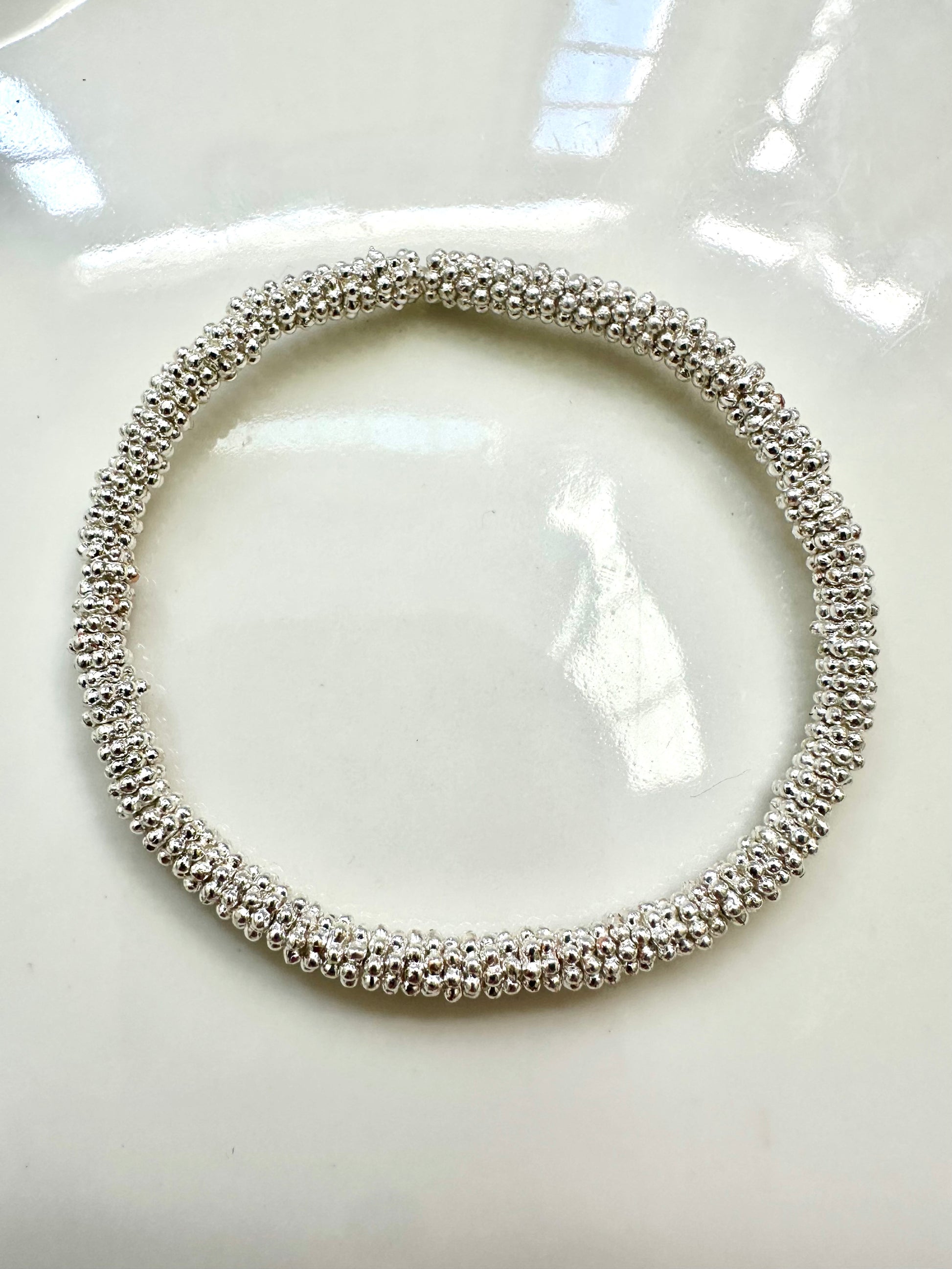 Delicately crafted and silver-plated, this handmade daisy bracelet adds a touch of charm to any look. Featuring tiny, sparkling details, it’s the perfect accessory to wear alone or layer with your favorites. Versatile and elegant, it complements any outfit—from casual to formal. Bead size is 4m